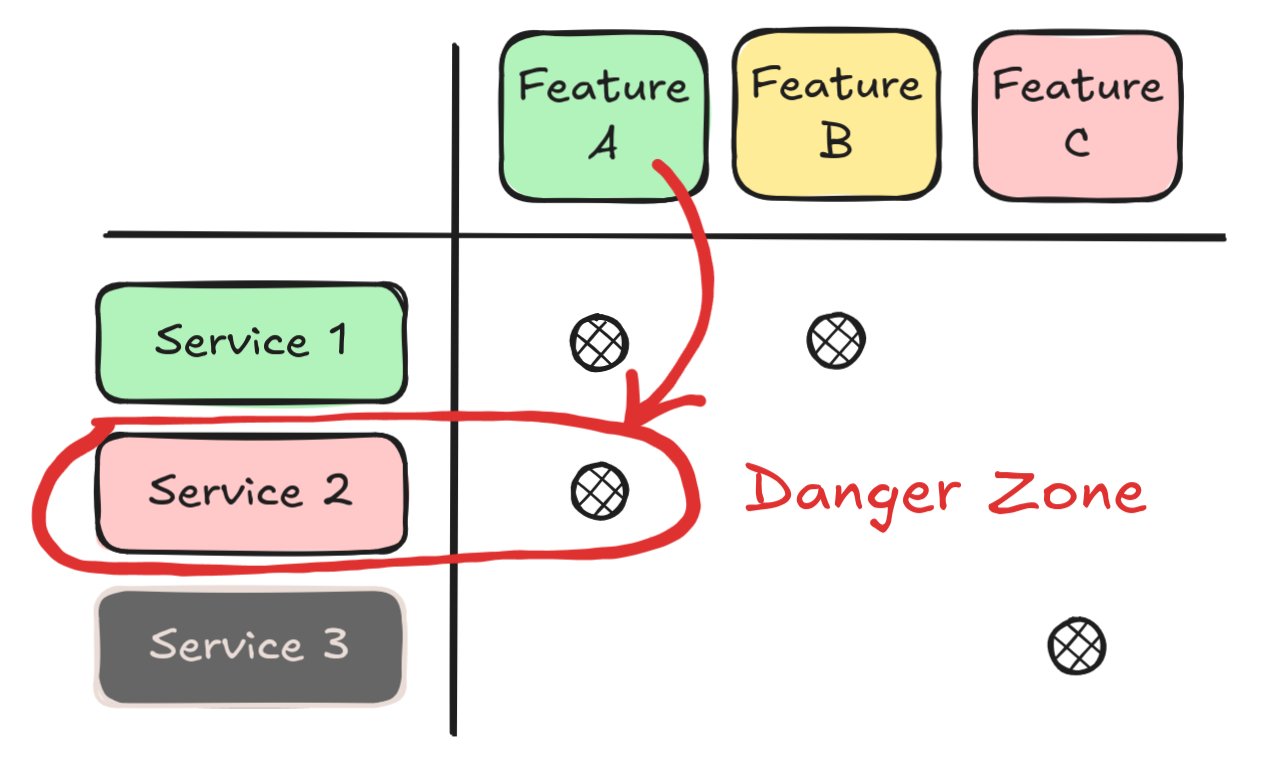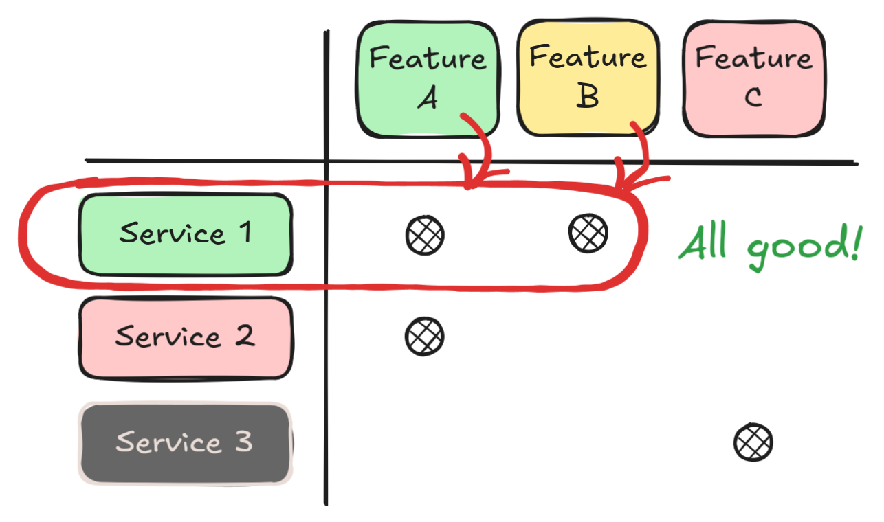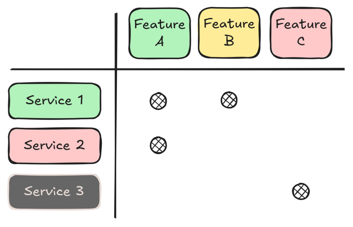 - In the following example, Feature A is backed by Services 1 and 2.