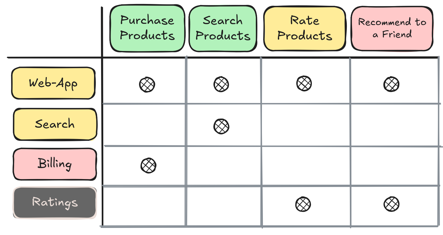 Let's assume there are four features backed by the services we enumerated in the first session: