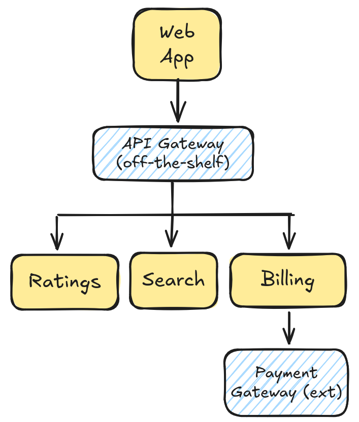 In this workshop, we will focus on in-house services, ignoring off-the-shelf and external components of the
