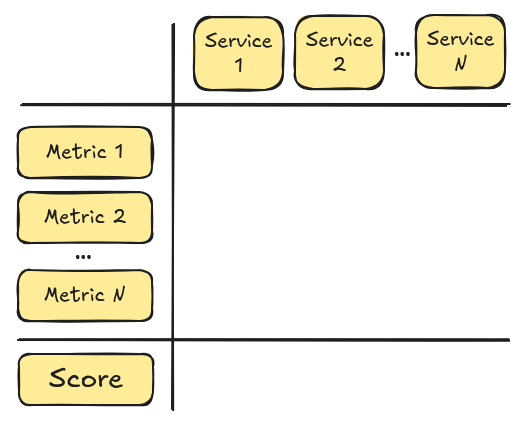 Then, start a discussion for each service and start assigning a score to each metric. As we'll see in the next section,
